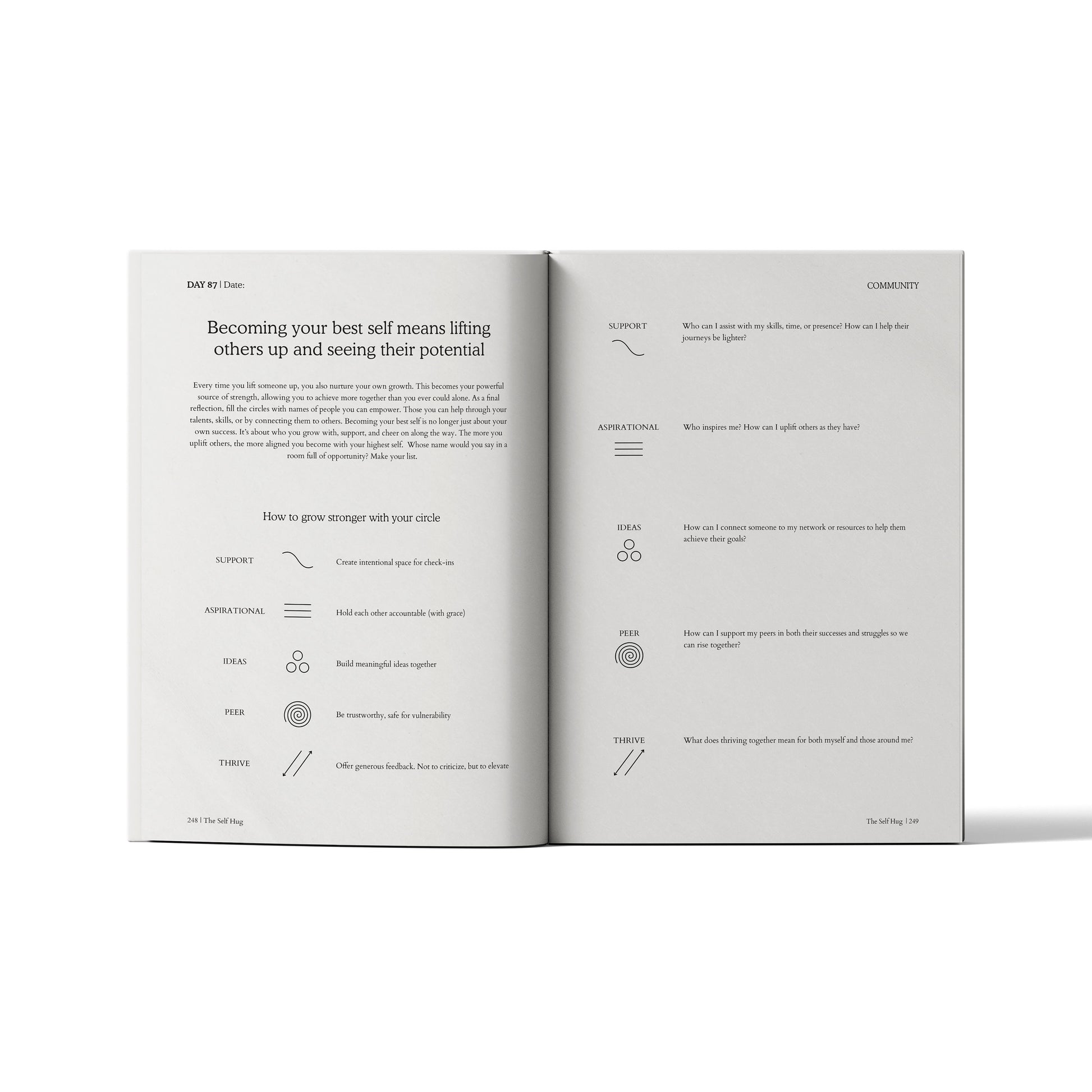 The Best Self Journal is the latest edition of The Self-Tranformation series. It offers deeper reflection and thought-provoking prompts. Before you begin, take a moment to listen to and check in with yourself. If you ever feel you need extra guidance, we encourage you to practice alongside a professional
